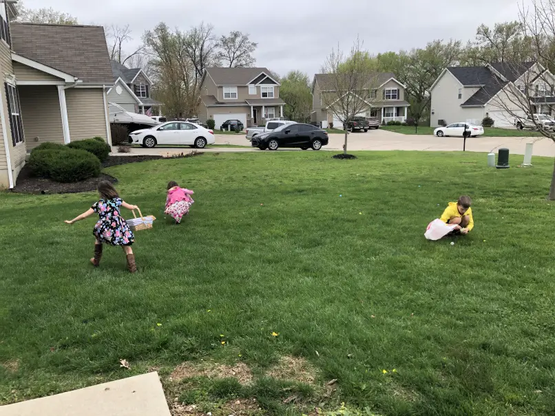 The HOA reps went around to all the homes with young kids and “egged” their front yard – they left a bunch of plastic eggs filled with goodies hidden in our yards, so our kids could participate in an Easter-egg hunt at home (and us parents didn’t have to lift a finger). It was a fun way to make memories, and a sweet surprise for our kids.